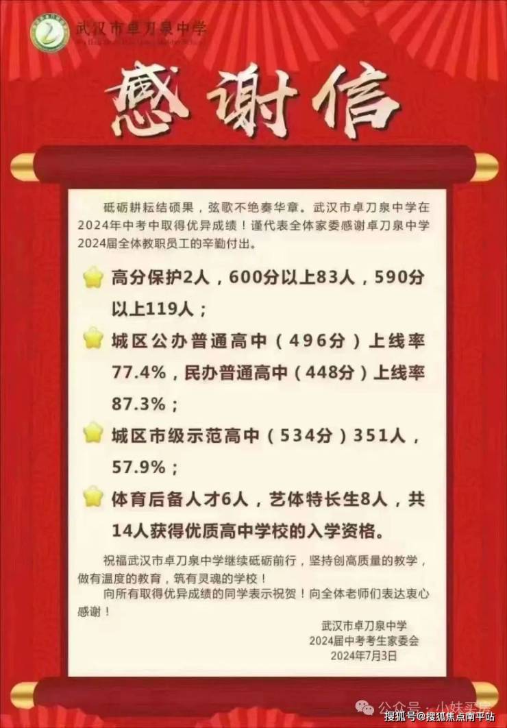 按照最新的2024年划片范围,项目预计对口卓刀泉小学和卓刀泉中学;卓刀泉中学2024年中考成绩非常好,高分保护2人,示范率57.9%,普高率77.4%。