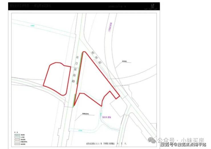 ②B地块西侧沿卓刀泉南路控制一条5米宽带状公园绿地。