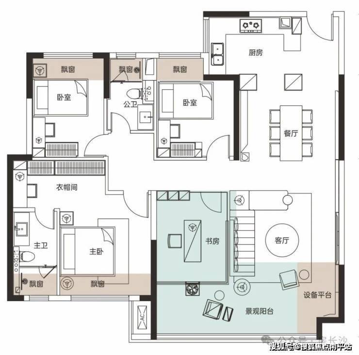 建面约139㎡四房两厅两卫:
