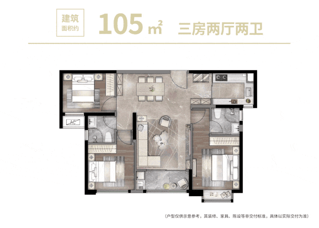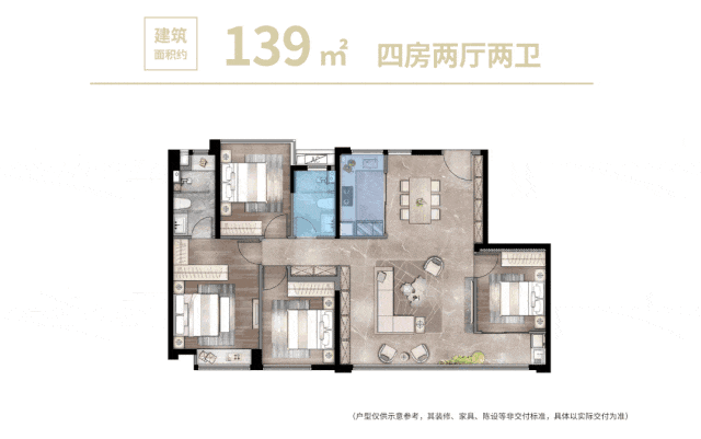 【在售产品】:建筑面积约105-139㎡精装3-4房