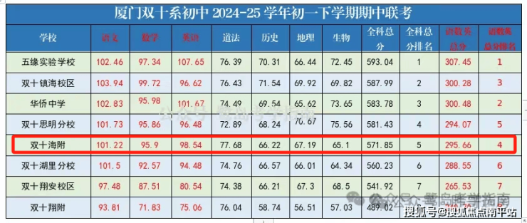 近期双十系八校联考,双十海附考出了和岛内顶级初中双十中学思明分校同水平的成绩,比五缘湾双十中学湖里分校还要高出不少。