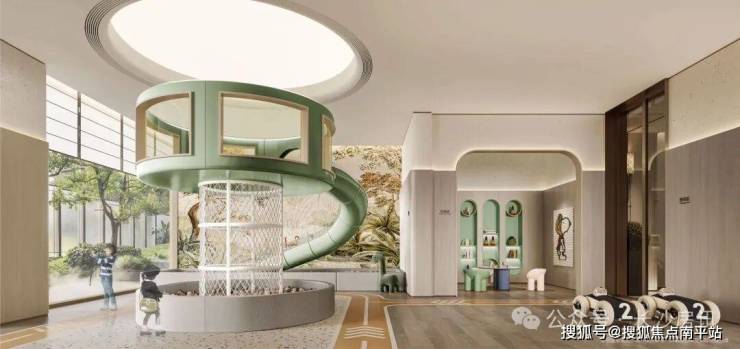 5大全龄架空层,局部为室内空间,包含休闲茶室、儿童娱乐区、亲子互动、健身康体、咖啡吧、休闲书吧等主题功能区,高占比架空层空间,将建筑空间更多服务于业主生活所需,扩容高质量社交圈。