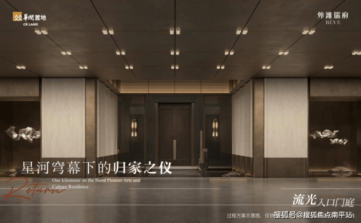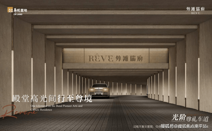 从哈尔滨路缓缓驶入,演绎四重殿堂星光级地下归家,首先 映入眼帘的是「光阶尊礼车道」,随之而来的是「隽美天幕玄关」,慢行间车停于「超跑级T台车道」,仿佛置身于私人的尊驾秀场;最终抵达「流光入口门庭」,光影流转间,归心于瑞。