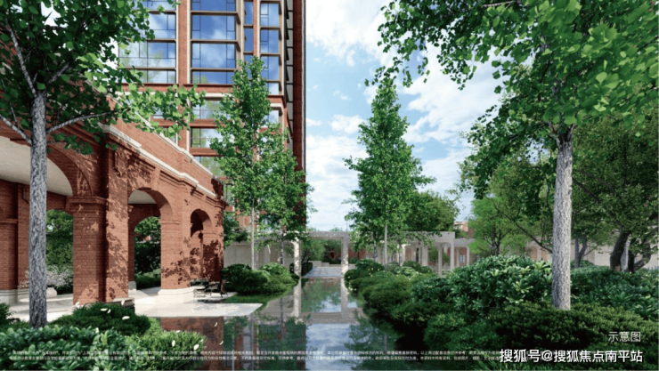从九龙路起步,在繁花水岸的滨水步道上漫步归家;归家之路在滨水艺境另一侧,是约7000㎡的沉浸式邻里风貌街区,融合党群服务与邻里综合体业态,可在归家路途中感受精致烟火气;之后抵达九龙路归家主入口的河岸艺术大堂,两条地上细分动线,藏着不同的归家意趣: 一条从主入口艺术大堂步入,沿着风雨连廊穿越花园小径,光影透过叶片洒落脚边,风携花香漫过肩头,仿佛逛完一场印象艺术展; 另一条则经风雨连廊直抵“艺术品展列空间”泛会所,或许邂逅正在展出的私人藏品,在艺术氛围中完成圈层身份的过渡。最后步入电梯厅,半圆弧形天花吊顶暗合“天圆地方” 东方哲学,让归家终拾恢弘而宁静的仪式感。