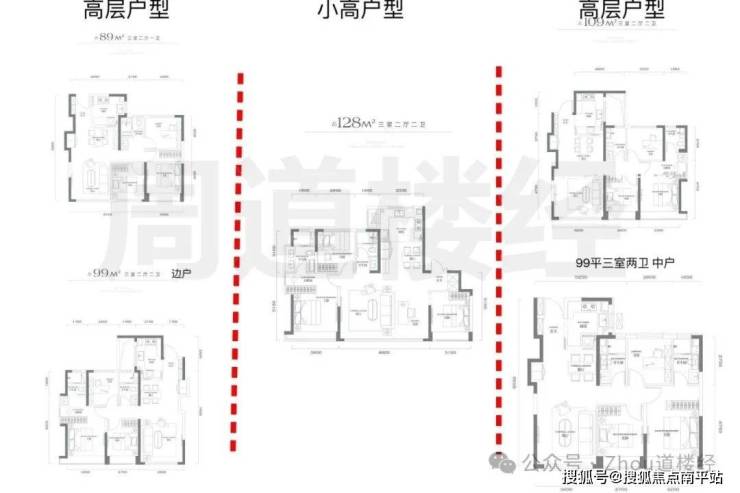 【主要面积段】:89-143㎡(小高层:128㎡3+1房两厅两卫,143㎡3+1房两厅两卫。高层:89㎡三室两厅一卫,99㎡三室两厅两卫,108㎡三室两厅两卫)