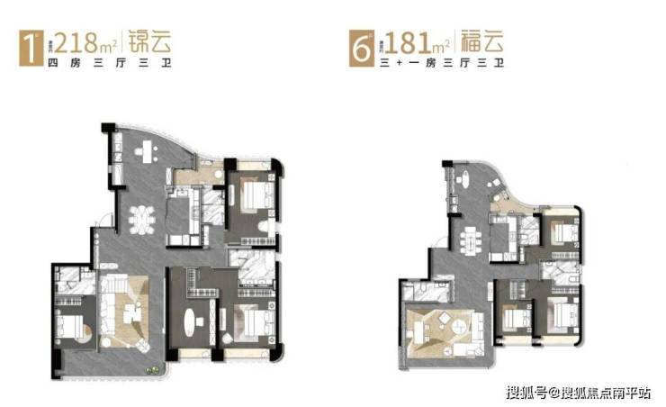 空间尺度突破常规:3.1-3.6米层高超越新规及市场平均水平,部分户型双阳台设计+四室向阳,让空间回归"以人为本"。