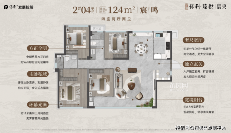 户型更绝,号称“全景舱”,使用率高达97%(以2#04单元为例,电梯厅、设备平台、飘窗这些都算使用面积),3.05/3.15米的层高,不压抑,还做了无柱设计,270°采光,家里每天都亮堂堂的,住着巨舒服!