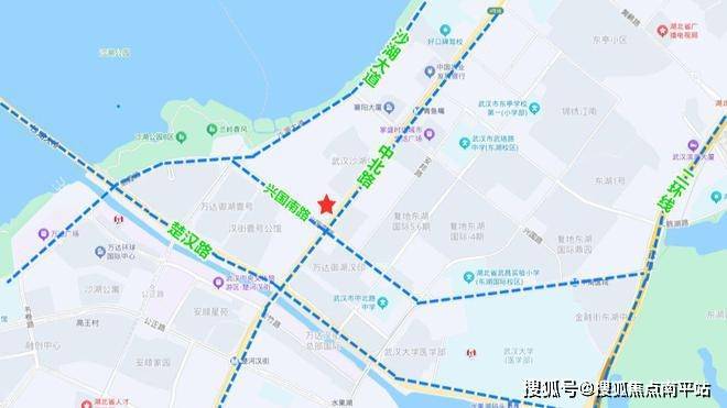 从微观上来看,北面是沙湖中心,南面是兴国南路、汉街壹号公馆,西面是建发朗玥,东面是中北路。