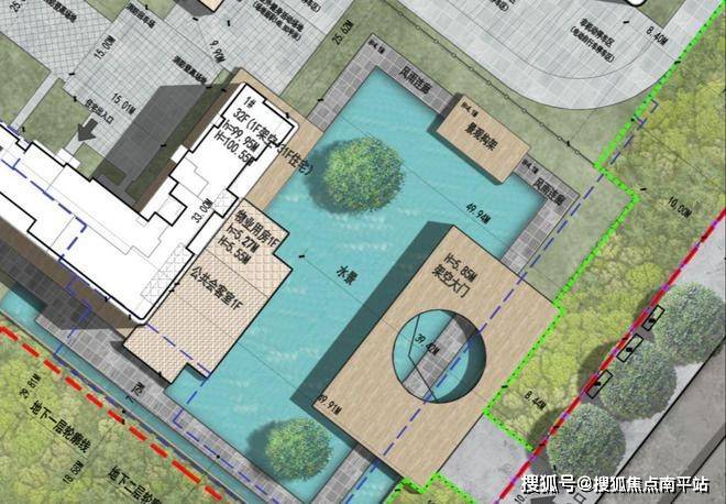 虽然整个项目体量不大,但也做了一个大面积的水景,并从架空大门处通过风雨连廊连接住宅楼。项目还有166.26㎡架空层公共会客室,570.22㎡的地下公共会客室,估计是项目的会所。