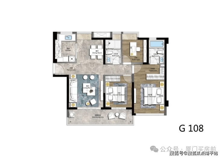G户型-约108㎡-三房两厅两卫