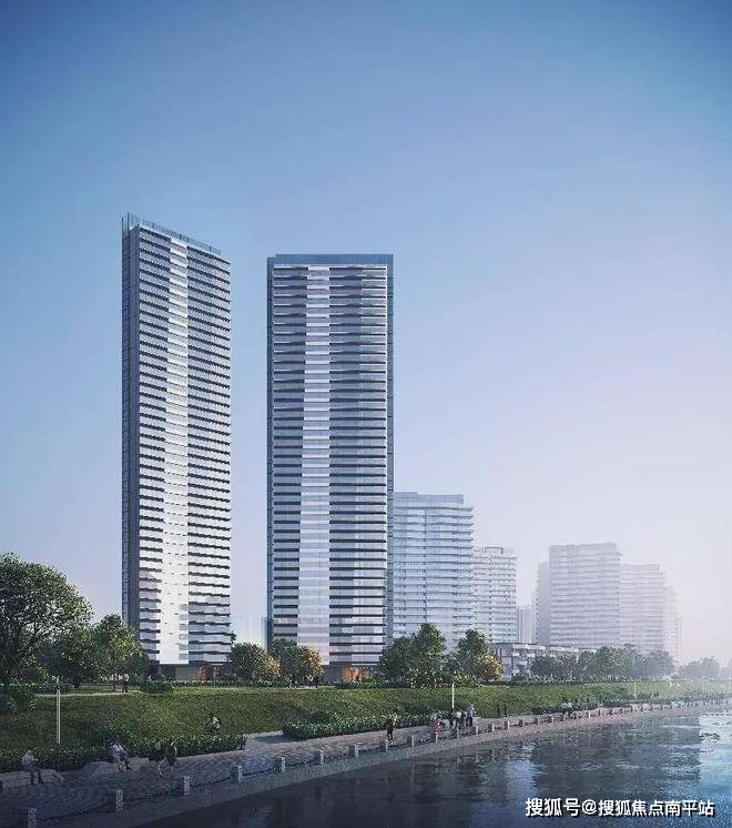 湘江序“一览众山小”,规划了2栋约139.4米超高层住宅,双子塔汲取湘江灵感,通过蓝白相间的色彩,打造“晶钻水波”立面,大面积玻璃窗+铝板外墙+金属线条勾勒,颜值超高。