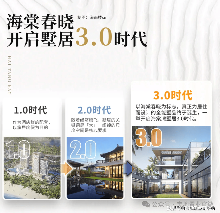 墅居3.0时代:以海棠春晓为标志,真正为居住而设计的全能墅品终于诞生,一举开启海棠湾墅居3.0时代。