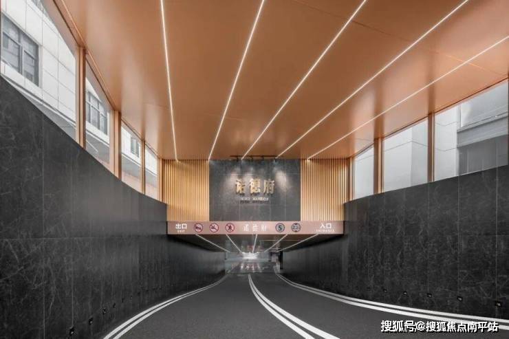 艺术光影车库,过道格栅吊顶,打造归家仪式感