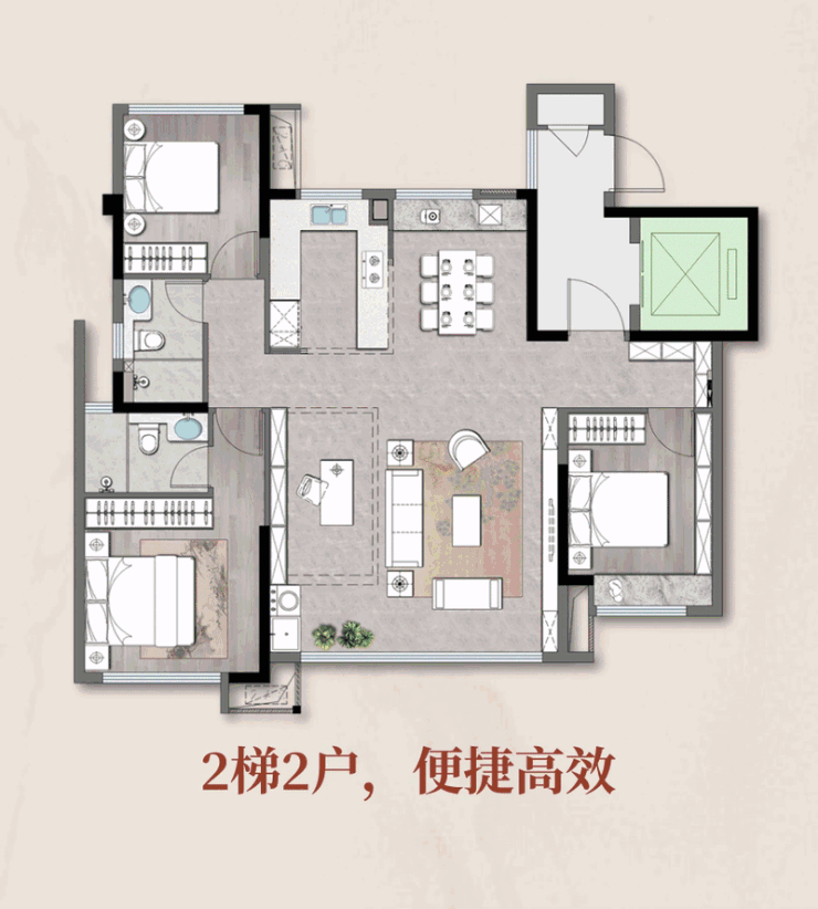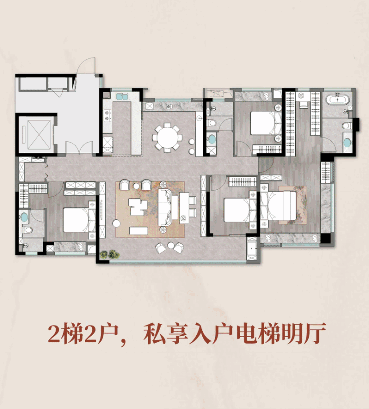 ● 2梯2户,私享约4㎡独立入户电梯厅,礼遇尊崇