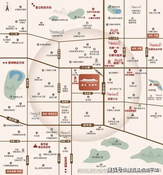 当然,这次建发观唐府更是罕见的“地段与产品”双价值爆发的高光。项目秉持“非中心不落子”的择址观,占位石狮央轴八七路与子芳路黄金交点,对望市府门庭,坐拥3公里城央超级生活圈,囊括核芯政务、文化、休闲与高端居住为一体的醇熟资源,如此核芯的地段和顶配的资源不可复制。