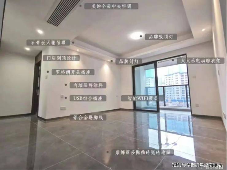蒙娜丽莎地砖时尚简洁,全屋中央空调,全天候畅享舒适,智能WiFi、看家摄像头,可视对讲,UIOT一键断电控制面板,一键开启完美智能生活;