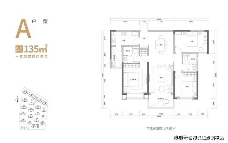 同时,238㎡大四房,可赠送面积约60.20㎡,得房率达110.2%;296㎡大五房,可赠送面积约70.80㎡,得房率达111%,是真正的负公摊产品。