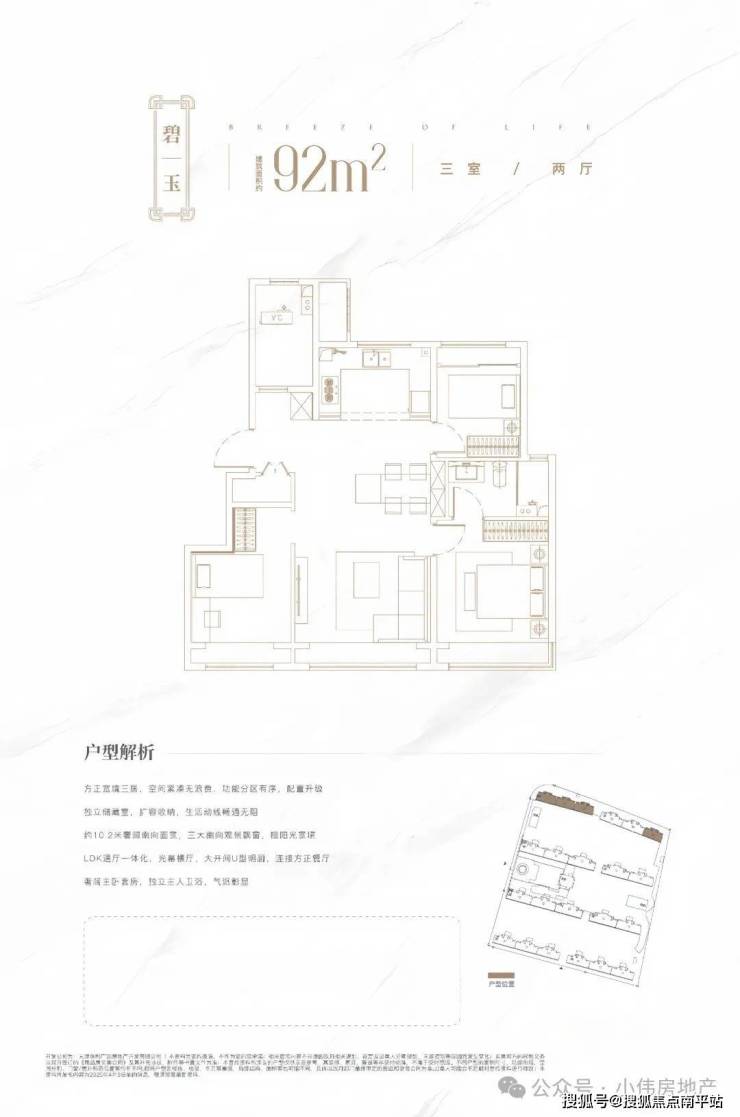 🔥A户型|碧玉92㎡三室两厅两卫: