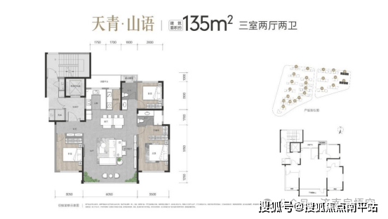 小高层,135㎡三室两厅两卫,最东侧两栋楼,三面宽设计,客厅6.05米,厨房旁边设置独立家政间,北侧有约6㎡设备平台。