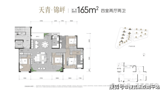 洋房165m²,单价20500元/m²,总价340万左右;
