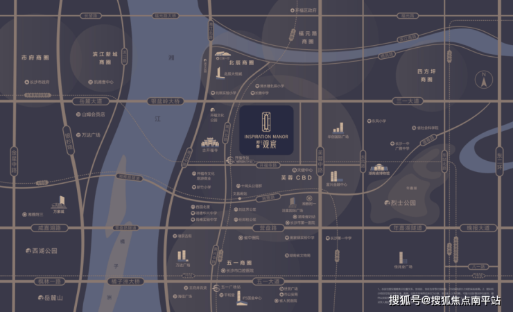 邦泰观宸落子开福区黄兴北路与开福寺路交汇处,距湘江直线500米,与千年古刹开福寺仅一街之隔。