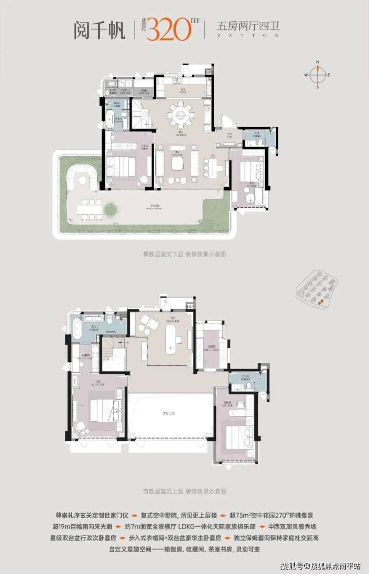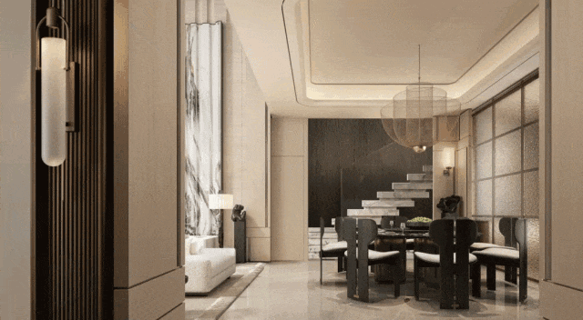 ·空间体系升级。例如 建面约320㎡旗舰跃墅作品,上下平行的生活时空升华奢居体验, 客厅做到约6.3米挑空,不仅大幅提升室内采光与通风效果,更赋予空间轩昂气韵,匹配名门家族气度。