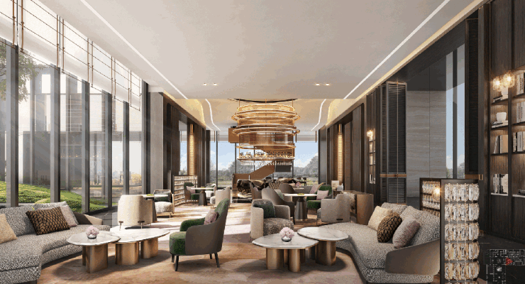 同时,项目深刻洞察高端人居与奢旅美学的同频进化, 移植YANG设计集团全球700余个酒店作品的成熟经验,从国际连锁酒店配套、架空层泛会所到楼栋公共空间,皆显奢雅度假气质。