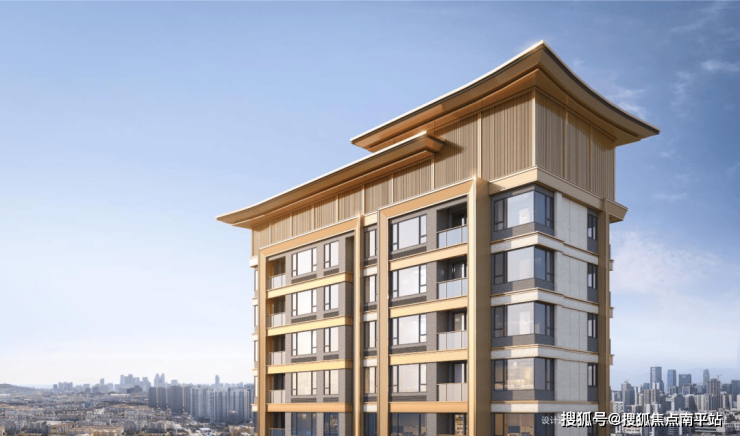 以 “诗意东方” 为魂, 创新三段式结构 , 双飞檐塔冠搭配香槟金金属线条 与 大面积 LOW-E 玻璃窗 , 打造 “钻感云幕” 建筑 , 石材首层门庭 重塑美学封面。
