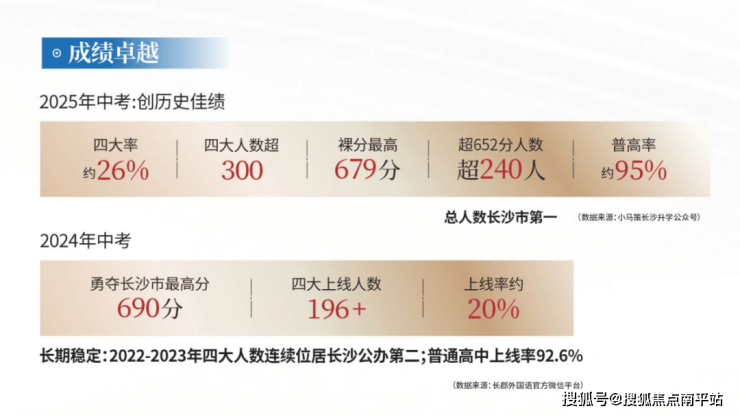 长郡外国语实验中学本部,稳居长沙公办初中一梯队,凭借雄厚的师资力量、严谨的教学管理、卓越的升学成绩,成为无数家长心中的“理想名校”。学校深耕多年,师资团队均经过严格筛选,教学经验丰富,始终以高标准培育学子,近年来升学成绩稳步攀升、屡创佳绩——2025年中考四大率高达26%,四大名校录取人数突破300人,拔尖创新人才选拔中表现突出,用实打实的硬核实绩,奠定了长沙公办名校的超高地位,口碑与认可度在家长圈层中拉满。