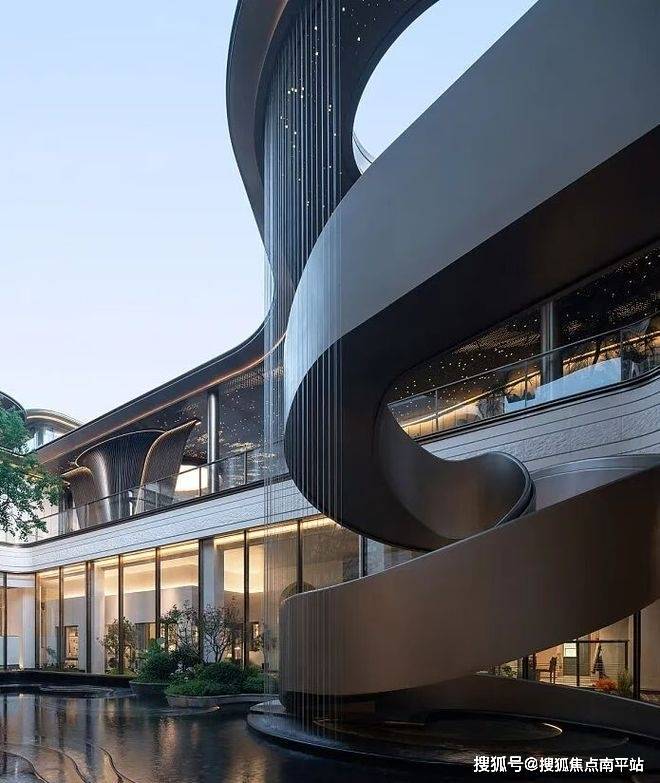错落露台,空中森屿,房屋综合使用率高达105%(四代宅);学士帽天际线,致敬千年文脉;书脊式全玻璃立面,辉映学府光芒;双曲面造型配以格栅和铝板,如同凤凰羽翼流动,著写经典建筑美学。