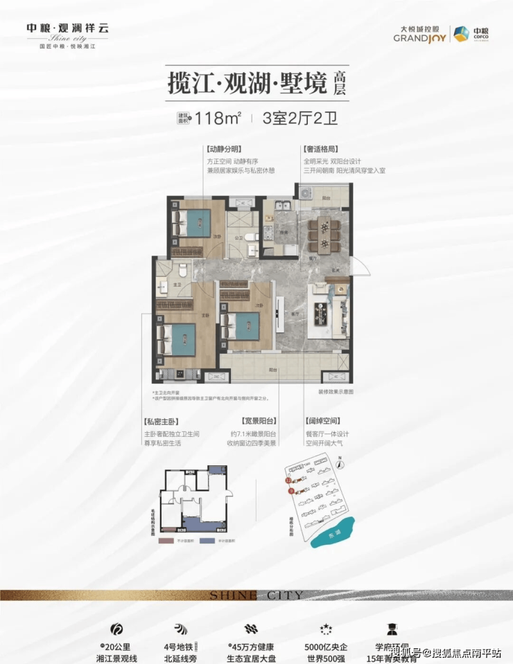 项目推出约107 - 168㎡揽江观湖墅境住宅,从刚需小三房到改善大四房,各种户型应有尽有。户型方正、南北通透,超大观景阳台将窗外美景引入室内,提升居住品质。