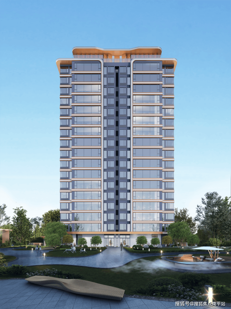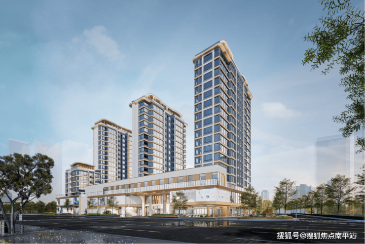 项目外立面采用大面积Low-E玻璃幕墙,隔音降噪、保温隔热等性能都做了升级。搭配高级灰+香槟金+蓝灰色的雅致色调,还有辨识度很高的鎏金王冠造型,焕发轻盈通透的高级质感。