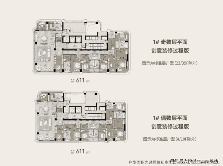保利玥玺湾项目总共由6栋35-50层高的超高层住宅组成,1号楼是整个项目最大的611㎡一层一户楼王户型,3号楼户型涵盖203-222-227㎡三种四房户型,6号楼和8号楼的户型则是相同镜像的270㎡四房和347㎡五房产品,5号楼户型均为237㎡四房产品,9号楼则是前排大面积的407-432㎡楼王五房户型。