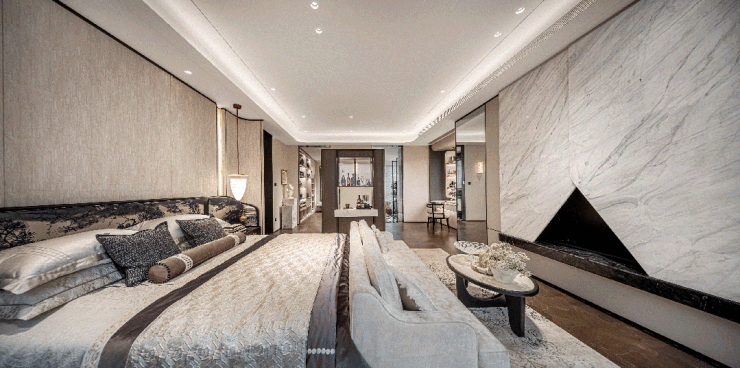 主卧套房配备270°寰幕视野,奢适尺度融合极致景观,营造静谧尊崇的隐贵生活秘境。