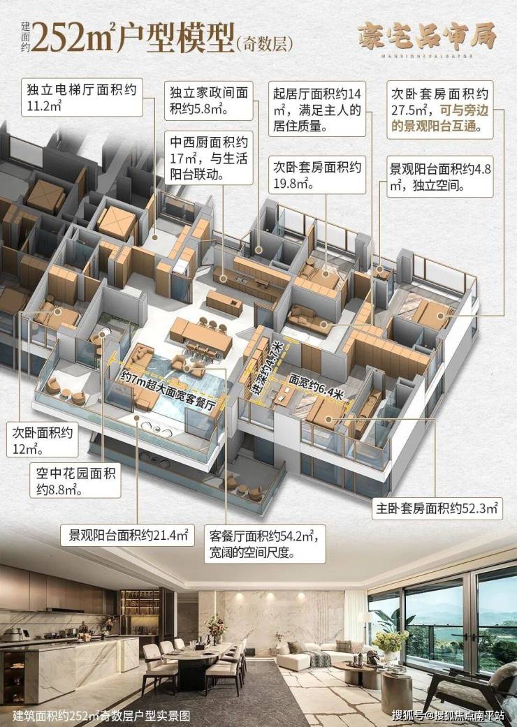 其中的王牌旗舰户型必然是 建面约252㎡的全景四化宅楼王。