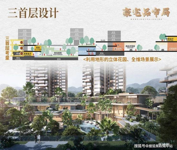 整个底盘最大的创新点是 「三首层底盘+游园式会所」设置。
