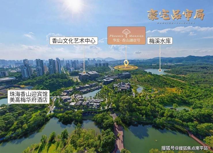 它背靠珠海市中心最大的生态公园香山湖公园。余脉山坳处形成的梅溪湖水库,距离项目只有百米不到;