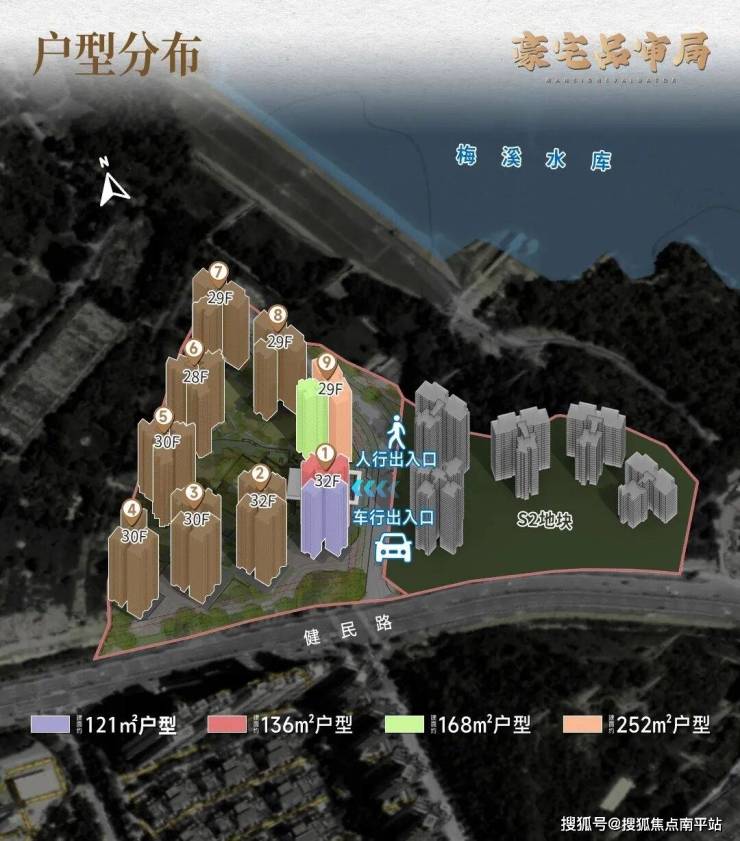 因此,将豪改户型放在梅溪湖水库一侧,通过角度模拟,让尽量多楼层的户型能够享受外向生态资源。