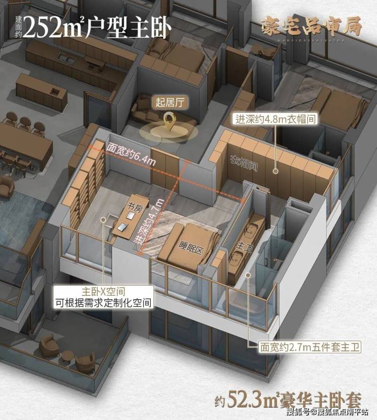 其中主卧区超过了52㎡。而6.4米面宽的睡眠区,可以让主卧多出一个X空间。