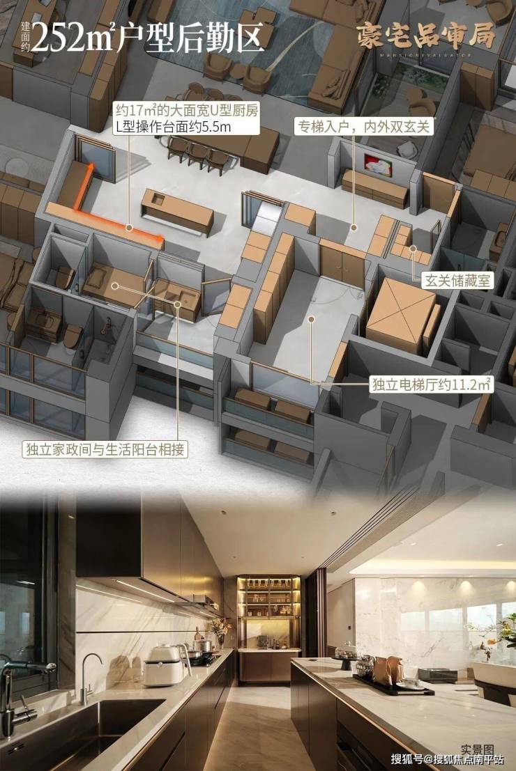 17㎡的大面宽U型厨房,也是今年我在同级产品中看到过的最大厨房。同时还难得配备了独立的家政家。