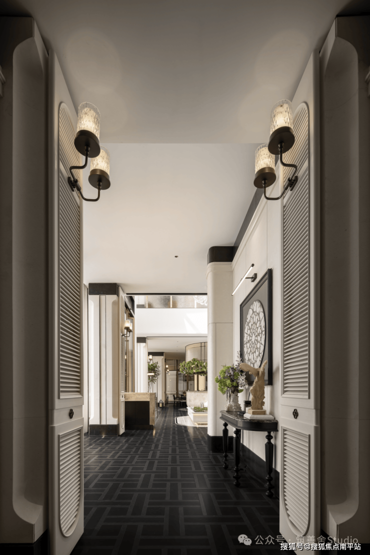 吊顶板设计灵感源自海棠花,密拼铝板中嵌入点状星光,光与影的交织展现出功能与艺术的完美融合。入口处精选豪华奢石,以其独特的纹理和温润质感,为归家者打造一段专属的记忆。正如叶片依赖根茎枝干得以绽放,西棠和煦Ⅲ正是对自我价值的一次深刻探索与展现。