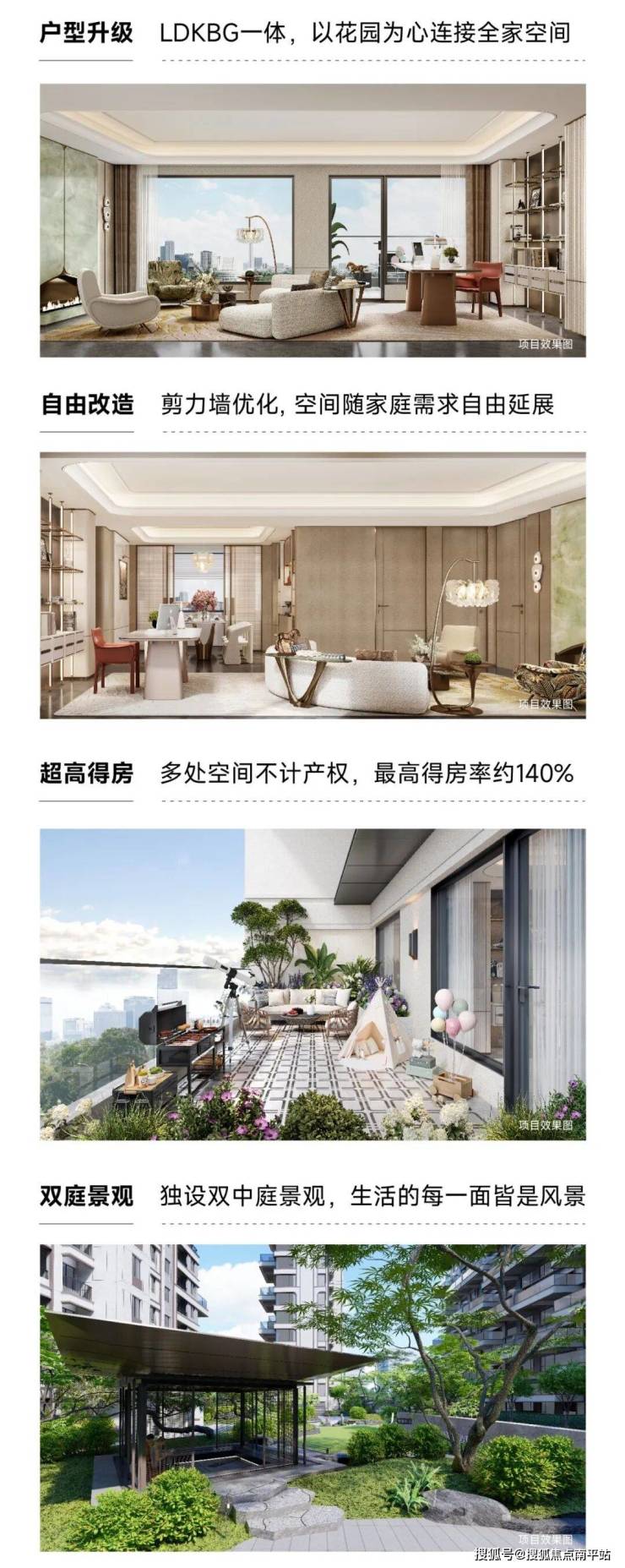 - 公摊:常规15-22%,赠送后零公摊,得房率高达120%