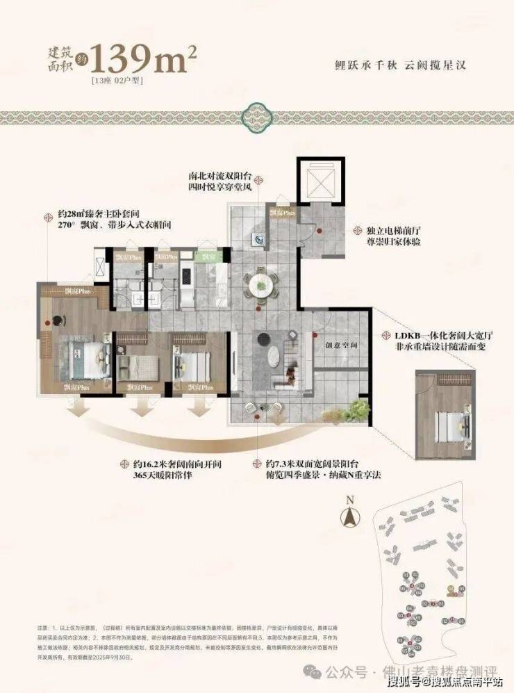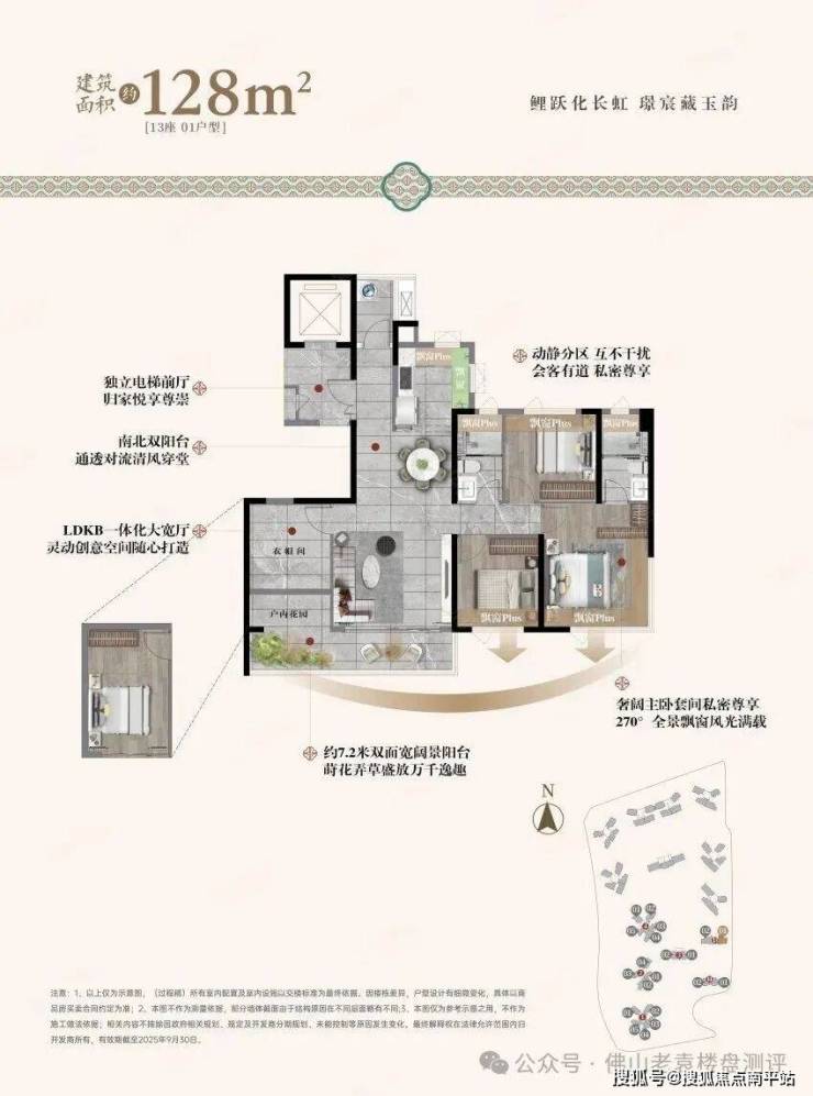 128-139㎡ 四房两厅两卫:高端改善户型,2 梯 2 户专梯专户设计,南北通透,主卧 270° 观景飘窗,私密性与居住舒适度拉满