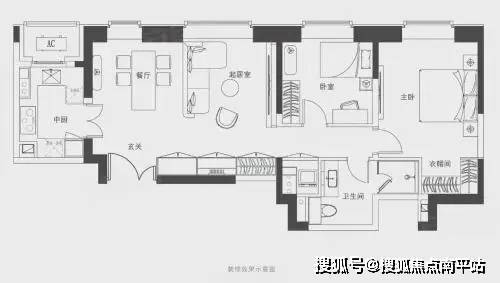 A户型:建筑面积约177-180㎡三房两厅两卫