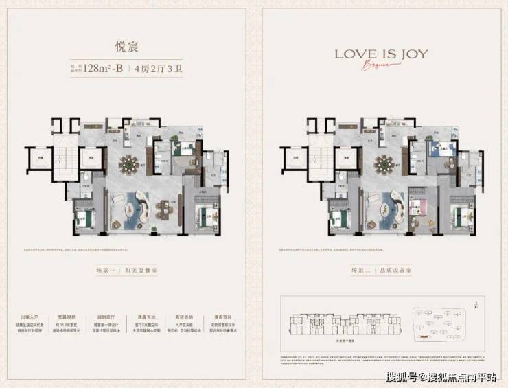 基于对当代菁英家庭改善向往,悦海棠定向研发悦己户型体系,建面约128-172㎡轻奢美学华宅,以X+1可变空间、家庭平权、超容量收纳等创新设计,由外而内,全维擢升精奢质感。