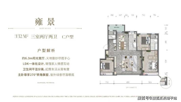 建筑的尺度,见证了人类居住需求的变更,绿城·晓月晴川建面约132㎡户型,是区域内罕见的大面宽、全景落地窗尊享型改善产品,LDK超大洄游空间,非常强调高端改善的公共空间尺度,以尊重奢适空间,包揽更多人居想象。