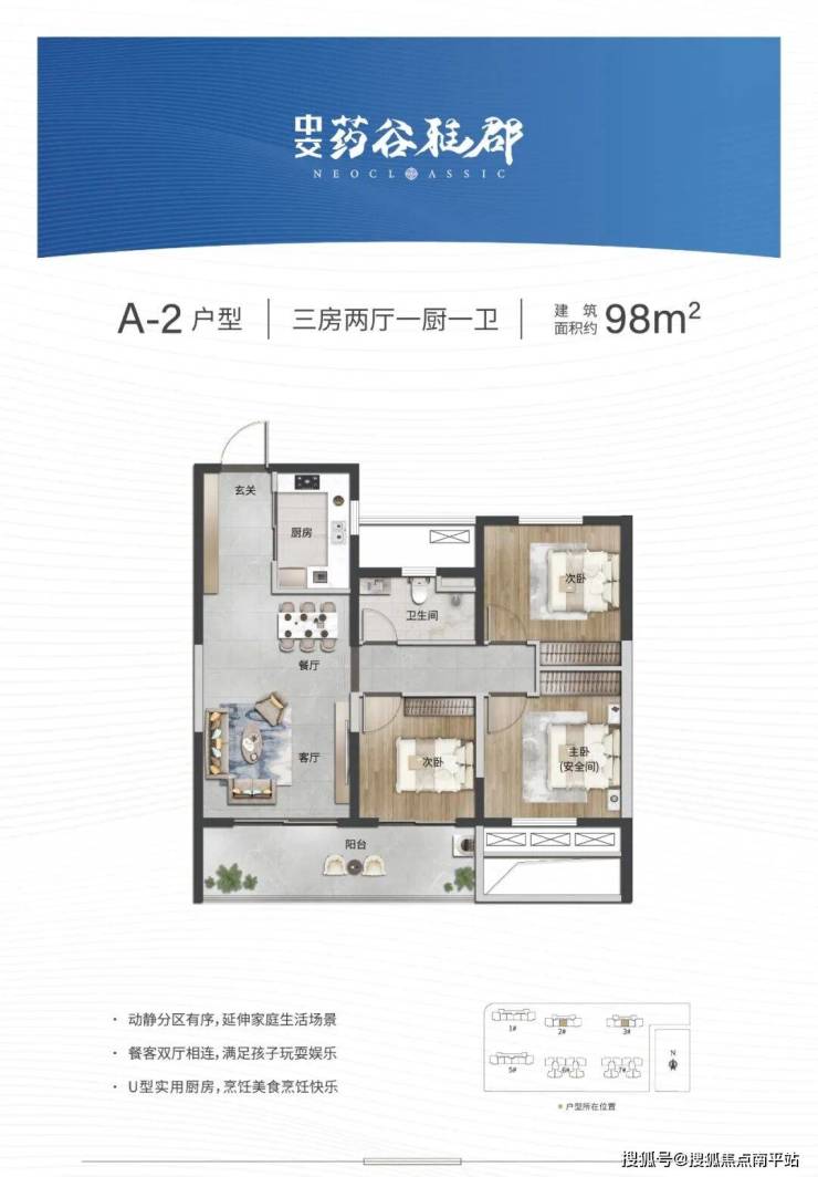产品面积:建面约 98-118㎡ 幸福三房