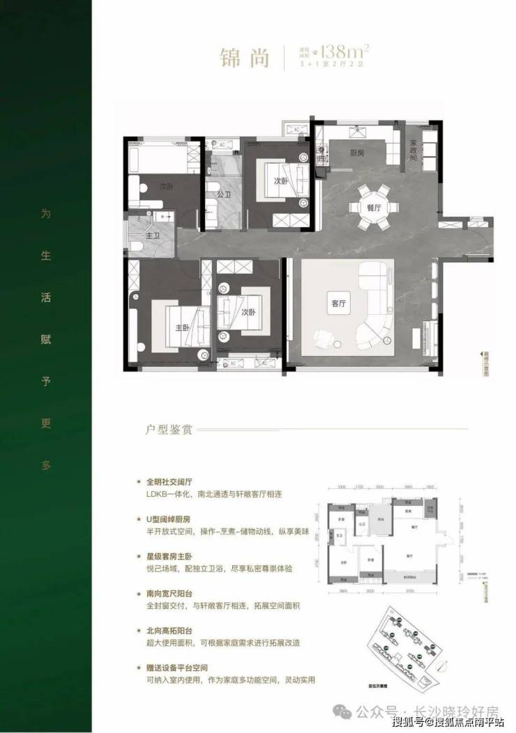 直线距离约850米直达湘江沿江风光带,近邻约6000亩洋湖国家湿地公园、约1200亩巴溪洲公园、约3800亩大王山森林公园、约7100亩伏龙山、约2000亩狮峰山,城市与自然随心切换。☎️☎️售楼处电话☎️☎️400-159-8559转接5555【已认证】(来电尊享优惠活动)