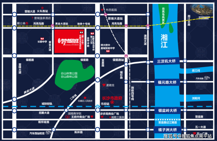 •项目位于湘江新区核心——月亮岛板块西面,也是滨水新城核心区域。