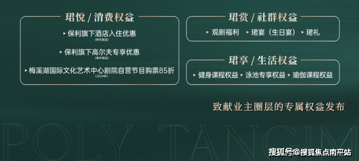 ●4月,「天下识珺」致献业主圈层的专属权益发布,保利旗下酒店入住优惠、健身课程权益、泳池专享权益、瑜伽课程权益等,为业主质造物质之上的心灵丰盛。